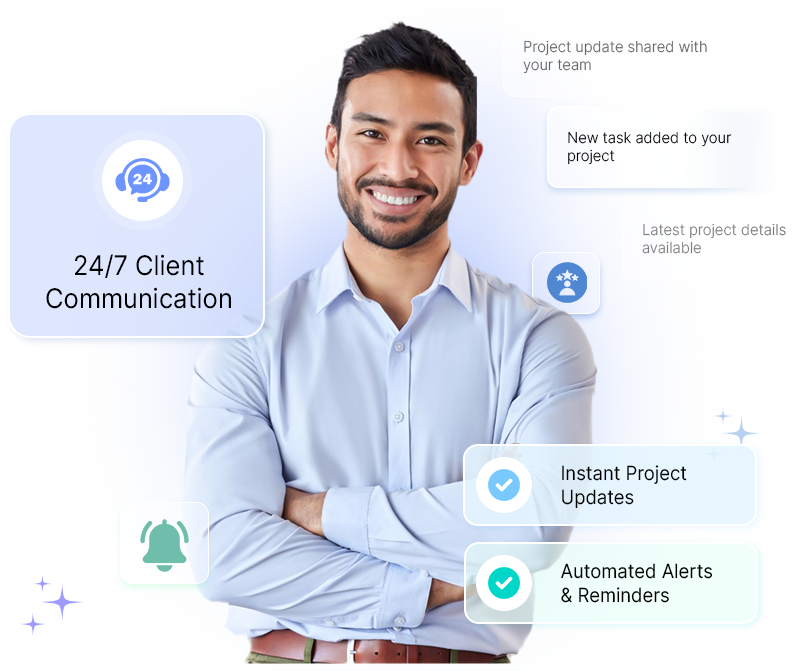 Send real-time project milestones, progress updates, and critical notifications directly to clients, keeping everyone on the same page, automatically.